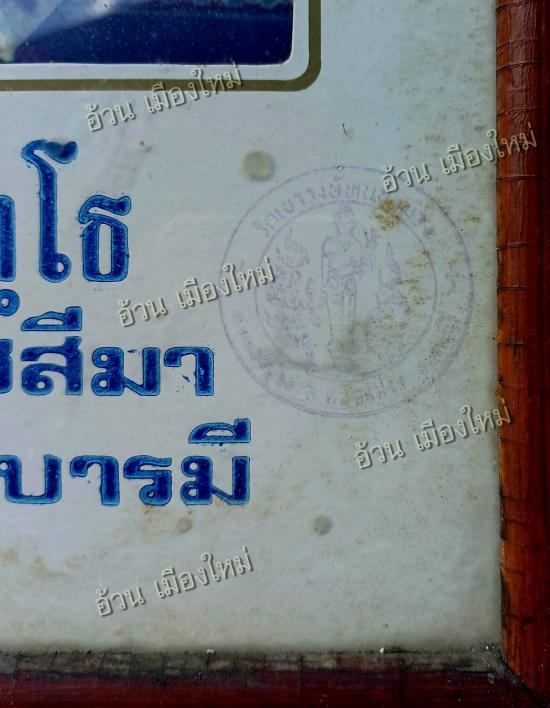 รูปถ่ายนั่งบริกรรมคาถา ( วัดกรอบ 13.5 X 18 นิ้ว ) รุ่น มหาเศรษฐี 9 บารมี จัดสร้างโดย วัดเขาวงษ์หนองม่วง จ.ลพบุรี พ.ศ.2536 ( ปั๊มตราวัดเขาวงษ์หนองม่วง )