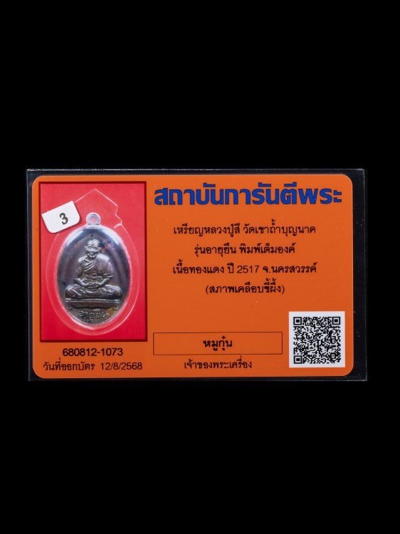 เหรียญหลวงปู่สี วัดเขาถ้ำบุญนาค รุ่นอายุยืน พิมพ์เต็มองค์