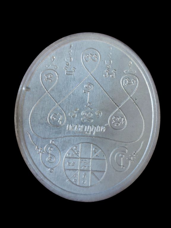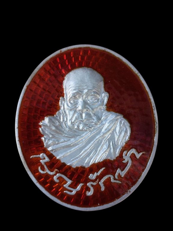 เหรียญบุญรักษา "เพชฌฆาตฤกษ์" ปี ๒๕๕๗ หลวงพ่อสมบุญ ปิยธมฺโม วัดลำพันบอง จ.สุพรรณบุรี เหรียญปั๊มกระบอก ห่วงเชื่อม เนื้อเงินลงยาเเดง หมายเลข ๘๑ เคาะดียว