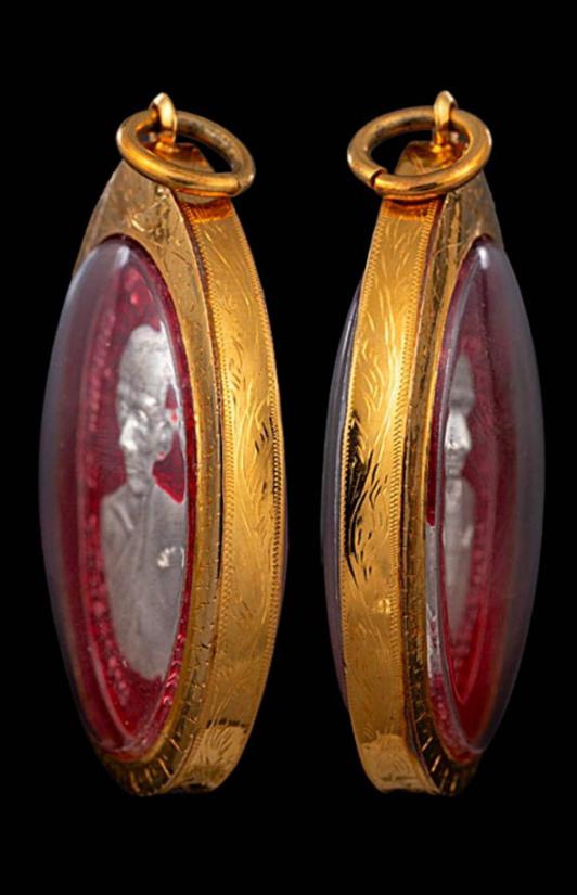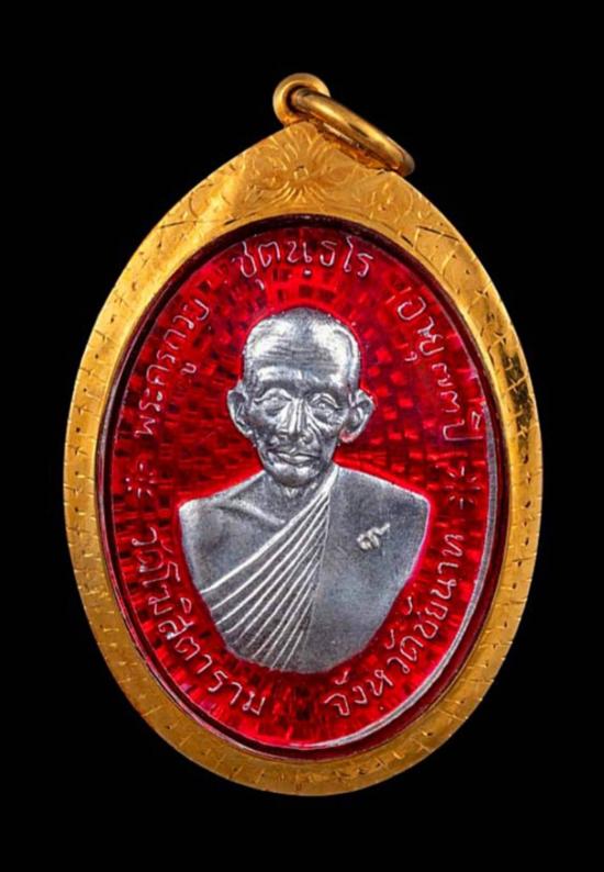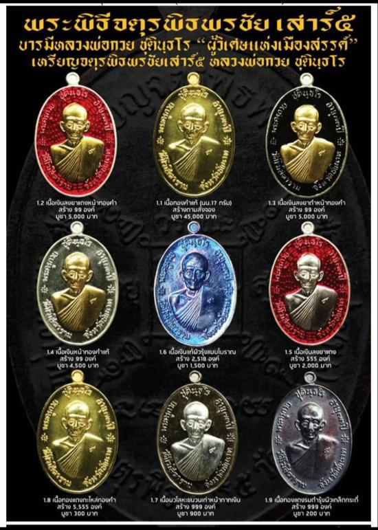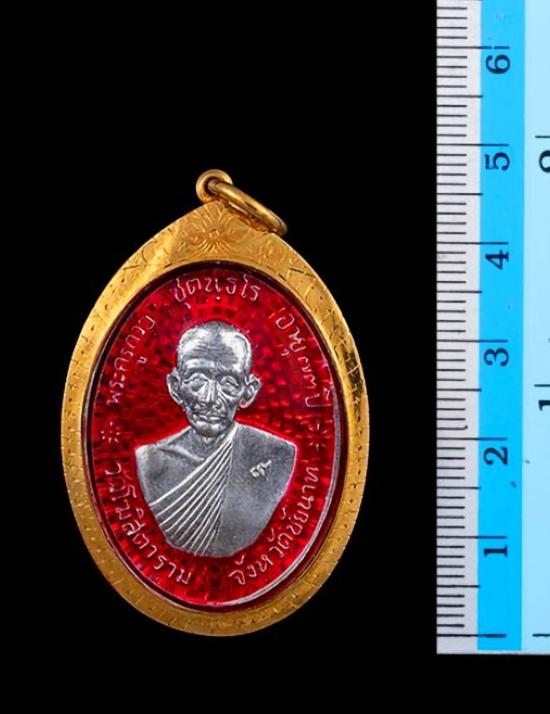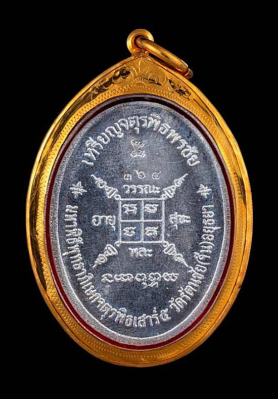 เหรียญหลวงพ่อกวย จตุรพิธพรชัยเสาร์5 ปี2563 เนื้อเงินลงยาแดง ตอกโค๊ด+เลขกำกับ ๓๖๔ เลี่ยมทององค์ใหญ่สวยๆพร้อมใช้