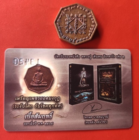 เหรียญสมนาคุณเนื้อสัมฤทธิ์ (เหรียญหล่อหลวงปู่ เดินหน อิเกสาโร รุ่นแรก เพชรยอดมงกุฎ (ระงับโศก รับโชคทุกทิศ) พร้อมบัตรรับรองหนังสือ หลวงปู่ เดินหน อิเกสาโร เล่ม 2 หมายเลข 13420 |
