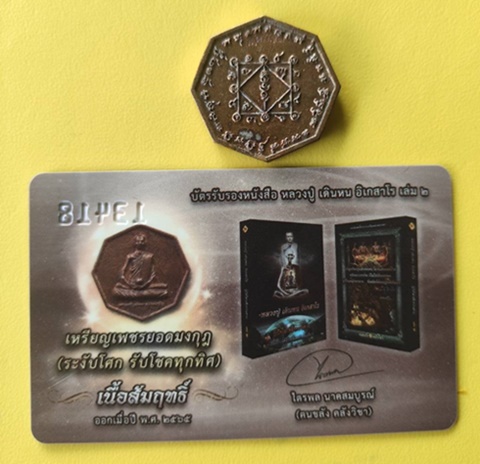 เหรียญสมนาคุณเนื้อสัมฤทธิ์ (เหรียญหล่อหลวงปู่ เดินหน อิเกสาโร รุ่นแรก เพชรยอดมงกุฎ (ระงับโศก รับโชคทุกทิศ) พร้อมบัตรรับรองหนังสือ หลวงปู่ เดินหน อิเกสาโร เล่ม 2 หมายเลข 13418