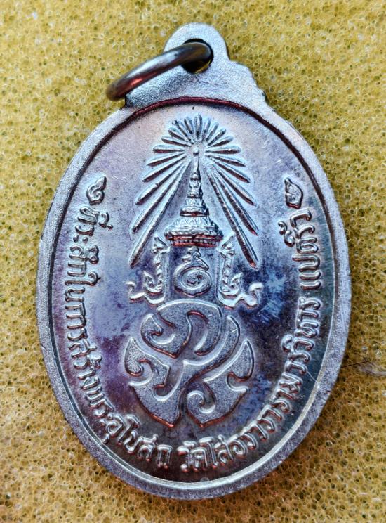 เหรียญรูปไข่ หลวงพ่อโสธร ที่ระลึกในการสร้างพระอุโบสถ หลังมีพระมหาพิชัยมงกุฎ/ภปร. ปี 2533
