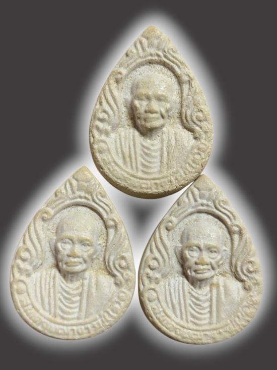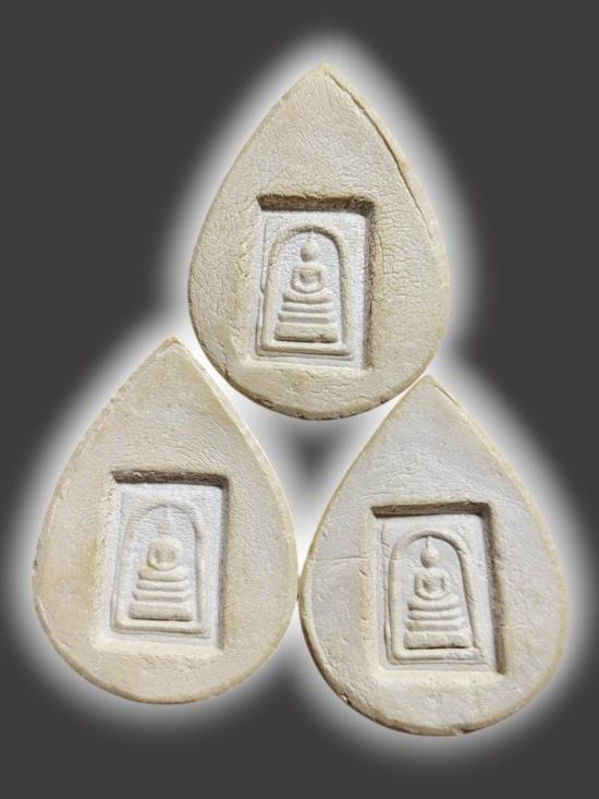 A5754. ผงหยดน้ำ สมเด็จพุฒาจารย์โต พรหมรังสี หลังสมเด็จ ยก 3 องค์ เคาะเดียวเเดง
