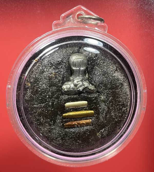 ล็อกเก็ตฉากขาว หลังบรรจุผงพุทธคุณ ฝังพระปิดตาเนื้อตะกั่วโบราณ ตะกรุด 3 ดอก ...