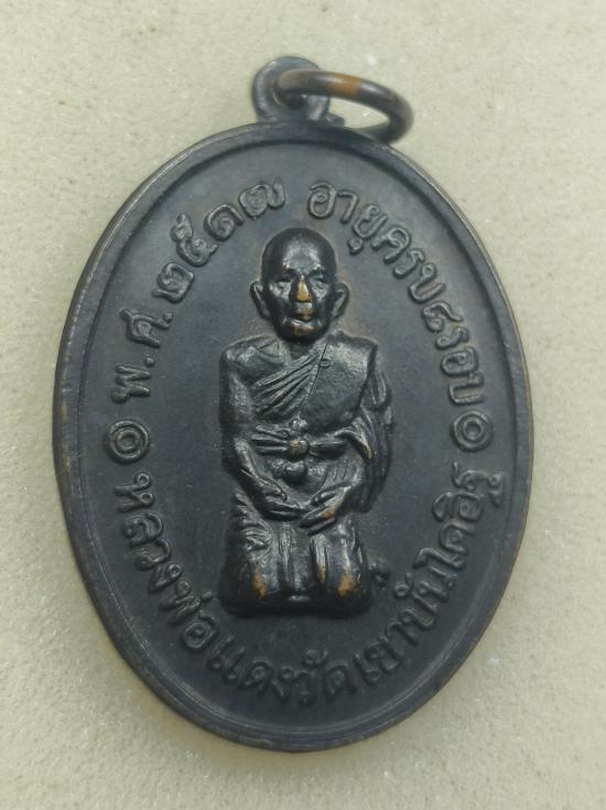 เหรียญคุกเข่า รุ่นสุดท้าย พิมพ์สองขีดบาง เนื้อทองแดง ปี 2517 หลวงพ่อแดง วัดเขาบันไดอิฐ จ.เพชรบุรี แดงเคาะแรก