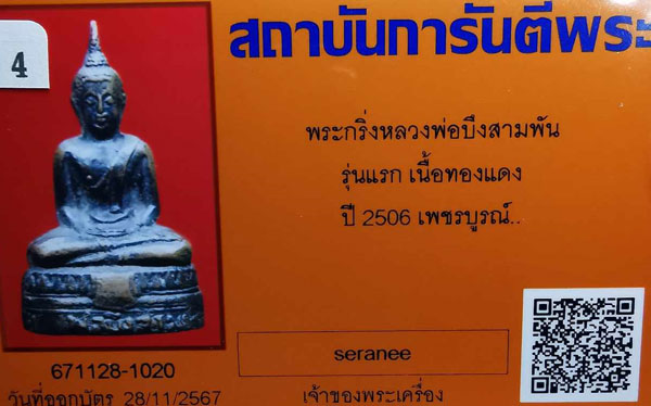 พระกริ่งหลวงพ่อบึงสามพัน รุ่นแรก เนื้อทองแดง ปี2506 จ.เพชรบูรณ์(หลวงพ่อทบ ปลุกเสก) + บัตรG-pra สภาพเดิมค่ะ สภาพตามรูปทุกประการค่ะ