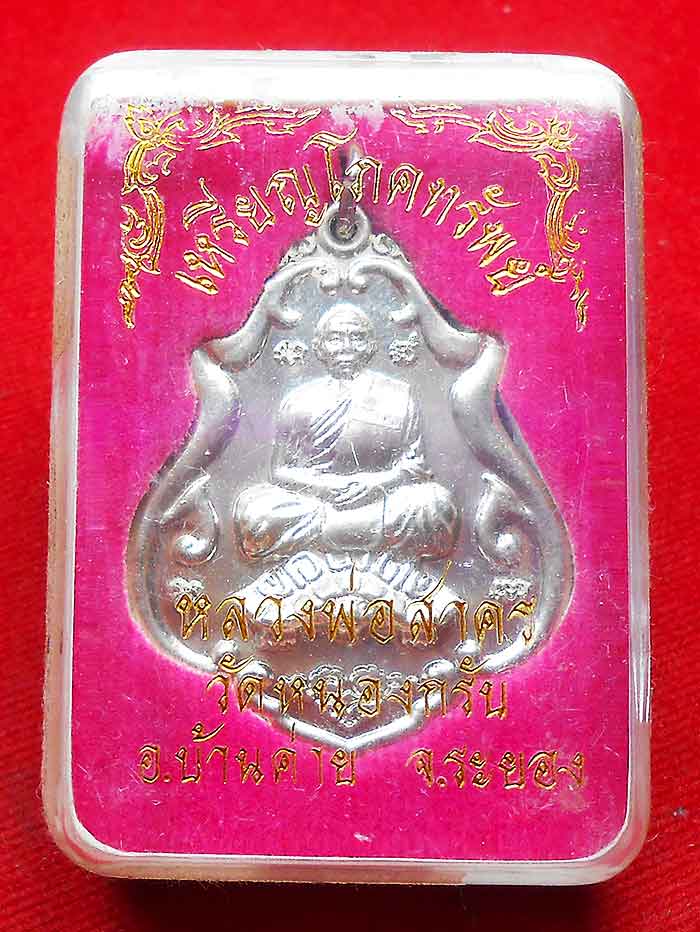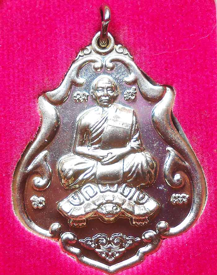 เหรียญโภคทรัพย์(ขี่เต่า)หลวงพ่อสาคร วัดหนองกรับ จ.ระยอง ปี 2552 ด้านหลังตอกโค้ต+หมายเลข เนื้ออัลปาก้า สภาพสวยเดิม กล่องเดิม |