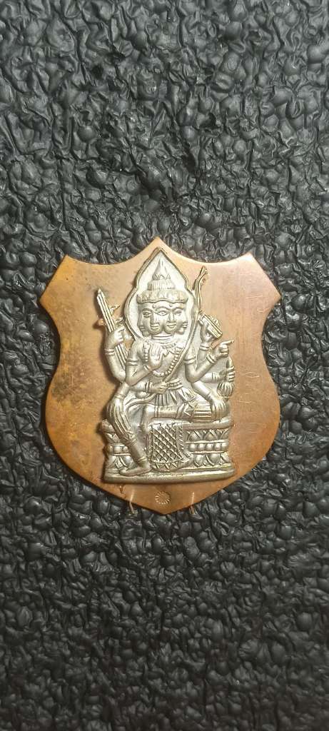 เหรียญพระพรหมหน้ากากเงินมีจารหน้าหลังตอกโค๊ต |