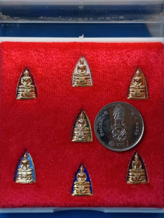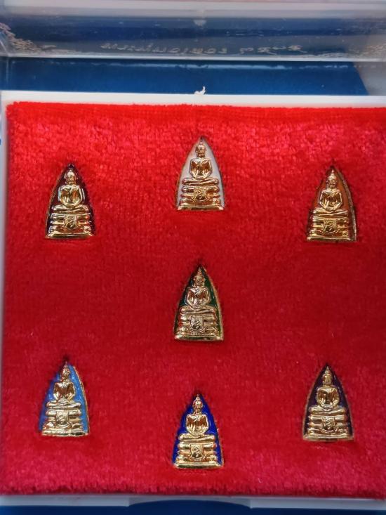 ***ชุดพระพุทธโสธรจิ๋ว กะไหล่ทองลงยา สีประจำวัน 7สี7วัน หลวงปู่วิเวียร วัดดวงแข กทม. ปี2535 จัดพิธีพุทธาภิเษกที่วัดโสธร สภาพสวยเดิม พร้อมกล่องครับ(เคาะเดียว) |