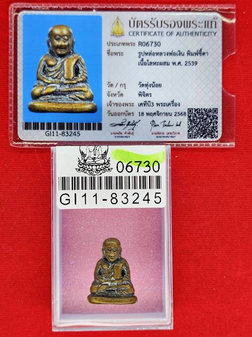 รูปหล่อ หลวงพ่อเงิน พิมพ์ขี้ตา วัดทุ่งน้อย เนื้อโลหะผสม ปี2539 พร้อมบัตรรับรองสมาคมพระเครื่องพระบูชาไทย