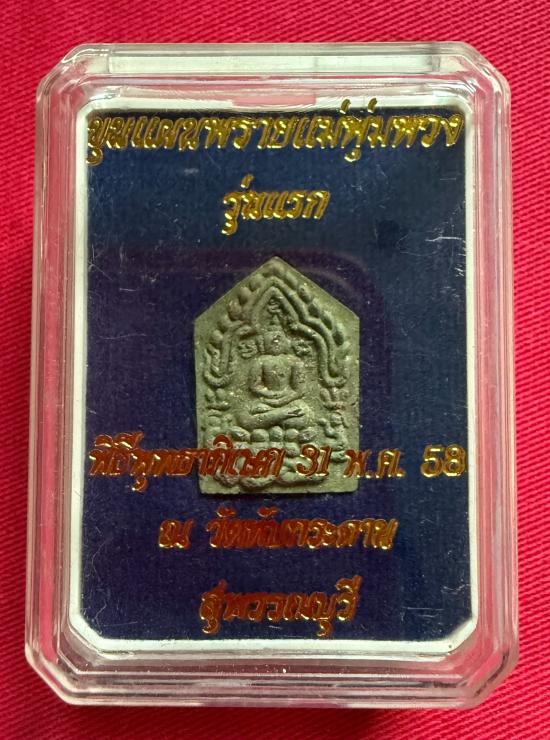 วัดใจไปเลยขุนแผนพรายแม่พุ่มพวง รุ่นแรก วัดทับกระดาน ปี 2558 เนื้อผงสีเขียว หมายเลข 1117 |