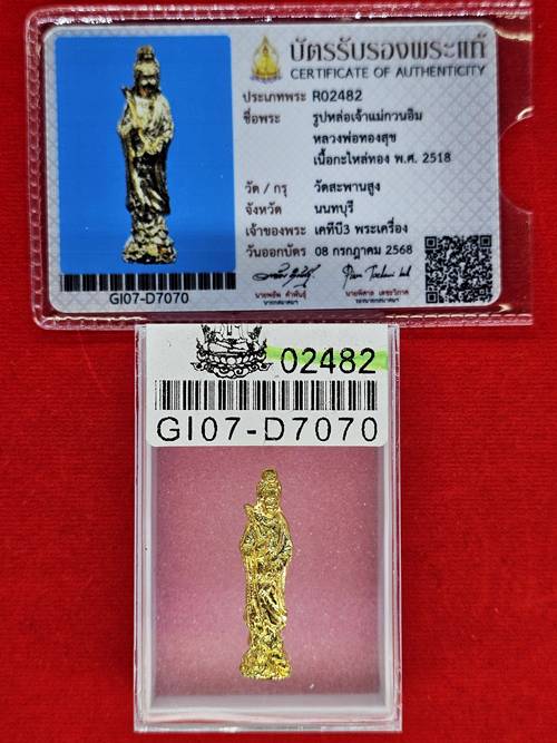 รูปหล่อ เจ้าแม่กวนอิม วัดสะพานสูง หลวงพ่อทองสุข ปลุกเสก เนื้อกะไหล่ทอง ปี2518 พร้อมบัตรรับรองสมาคม |