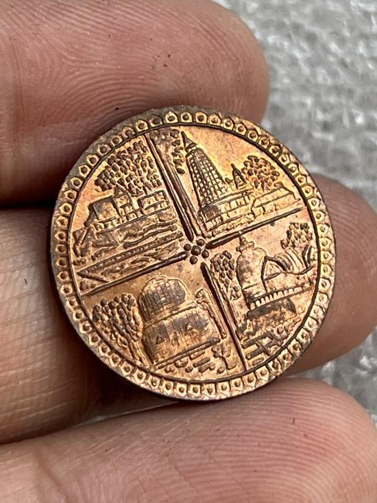 เหรียญตามรอยบาทพระศาสดา ผิวไฟแดงหน้า-หลัง