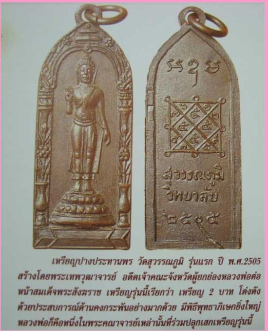 เหรียญปางประทานพร วัดสุวรรณภูมิ รุ่นแรก ปี๒๕๐๕ (เหรียญ2บาท) พระเทพวุฒาจารย์(เปลื้อง) วัดสุวรรณภูมิ จ.สุพรรณบุรี (ลพ.มุ่ย ,พระเกจิสุพรรณ ร่วมปลุกเสก) สภาพสวยมากครับ