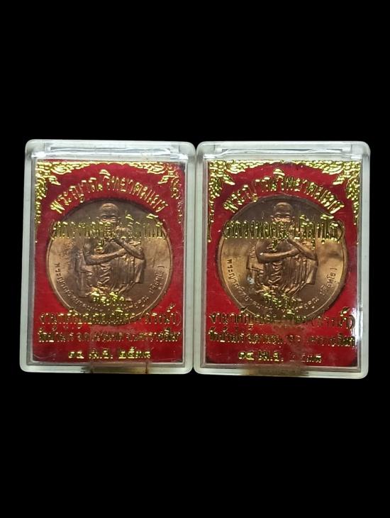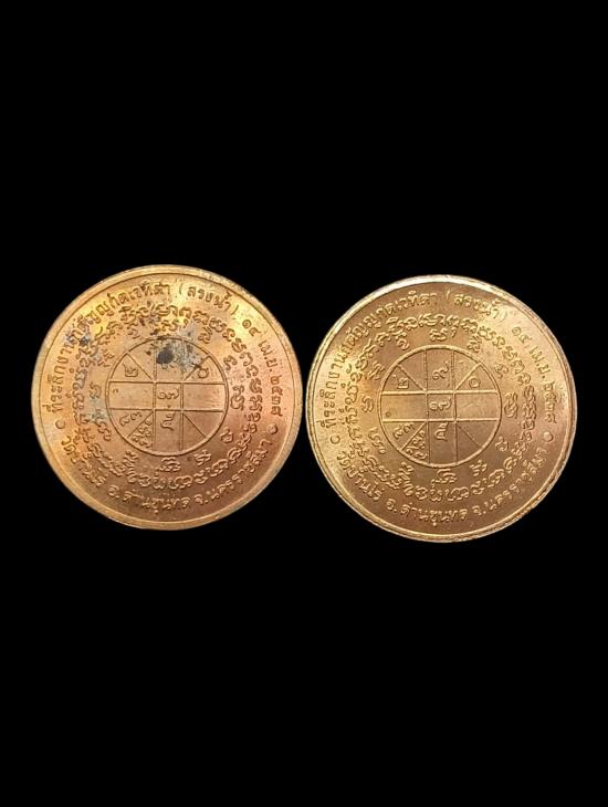 เหรียญสรงน้ำ หลวงพ่อคูณ ปริสุทโธ วัดบ้านไร่ นครราชสีมา บล็อคกษาปณ์ ปี 2538 ทองแดง มีกล่องเดิม รวม 2 เหรียญ สวยครับ