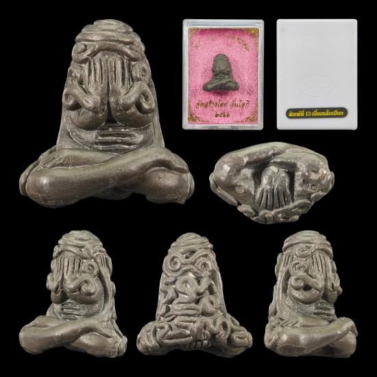 พระปิดตารวมพุทธคุณ ปลุกเสกโดย พระอาจารย์ต้อม วัดท่าสะแบง ร้อยเอ็ด จัดสร้างโดย คุณ อั๋น โอกิ มีมวลสารวัตถุมงคล พรหมประสิทธิ์ เทพบันดาลทรัพย์ มงคลเทพประสิทธิ เนื้อเหล็กเปียก พิมพ์ที่ ๑๓ หมายเลข ๒๐ จำนวน