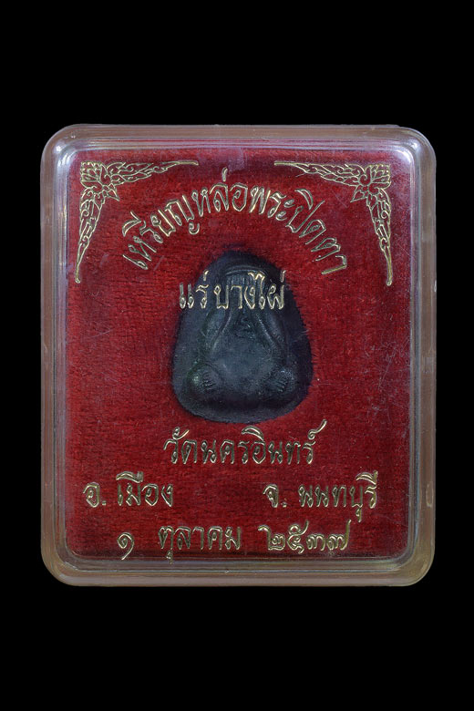 เหรียญหล่อพระปิดตาแร่บางไร่ ( พิมพ์เล็ก ) วัดนครอินทร์ จ.นนทบุรี ปลุกเสกโดย หลวงพ่อคูณ พ.ศ.2537 ( กล่องเดิม )