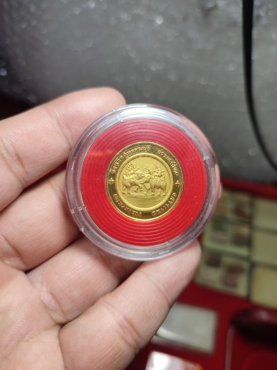 //เคาะแดง//เหรียญที่ระลึก จ.สุพรรณบุรี กะไหล่ทองพ่นทราย ขัดเงา