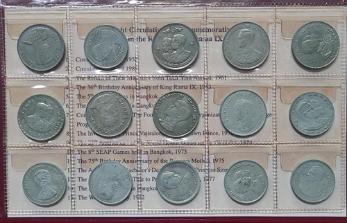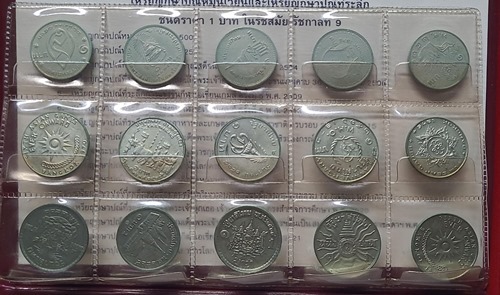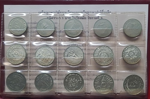 เหรียญกษาปณ์ 1บาท รวม 15เหรียญ พร้อมสมุดสะสม และใบกำกับภาษาไทย และ ภาษาอังกฤษ ควรค่าในการเก็บสะสม
