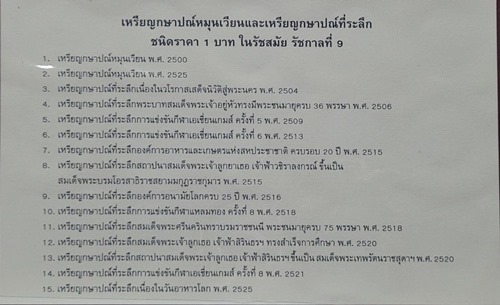 ชุดเหรียญกษาปณ์หมุนเวียน และเหรียญกษาปณ์ที่ระลึก ชนิดราคา 1บาท ในรัชสมัยรัชกาลที่ 9 พร้อมสมุดเหรียญและใบกำกับ(ตามรูป)