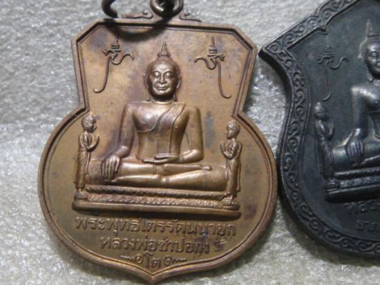 วัดใจเคาะเดียว.....100.......เหรียญพระพุทธไตรรัตนนายก หลวงพ่อซำปอกง(พ่อโต) วัดอุทัยภาตการาม ฉะเชิงเทรา รุ่นแรก ปี2544 + ปี2548 สวย รวม 2 เหรียญ