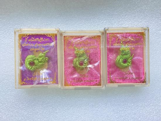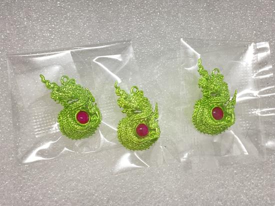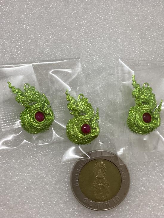 จี้มณีเศรษฐีนาคา วัดไทย จ.หนองคาย เนื้อสัมฤทธิ์ชุบอีโค๊ตเขียว กล่องเดิม ( 3 อัน )