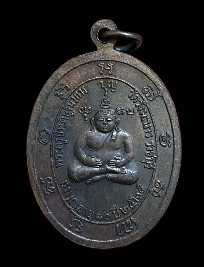 เหรียญหลวงพ่อบุญ (พระครูประดิษฐ์นวการ) วัดวังมะนาว จ.ราชบุรี หลังพระสังกัจจายน์ ทำบุญอายุ 80 ปี เนื้อทองแดง ปี 2525