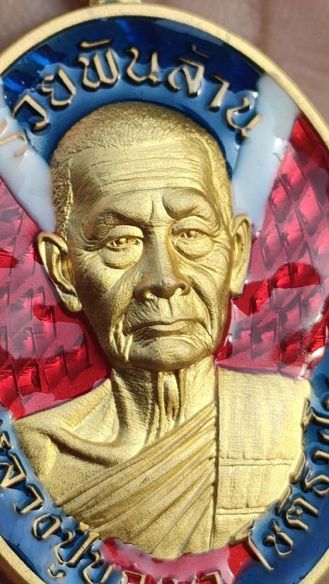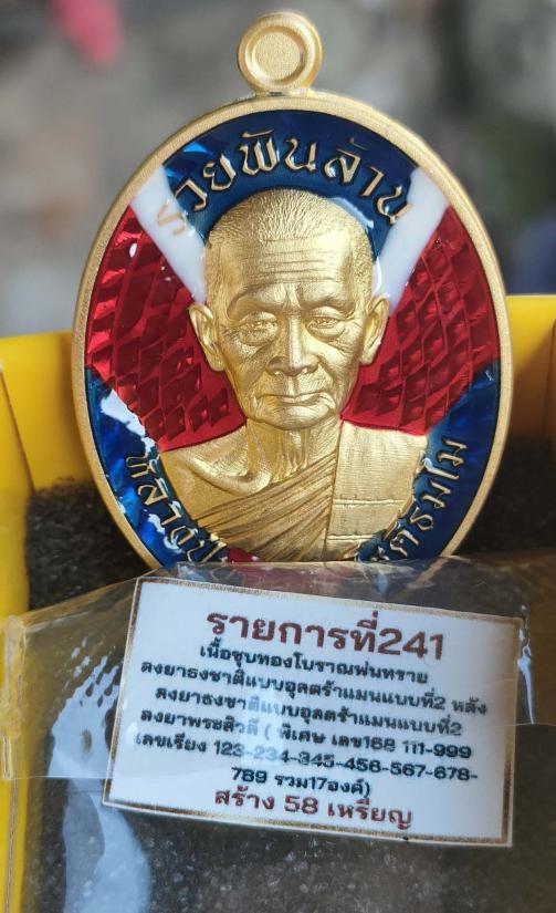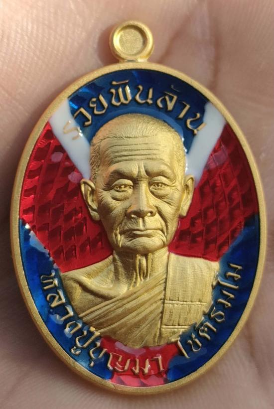 เหรียญรุ่น"รวยพันล้าน" หลวงปู่บุญมา โชติธัมโม วัดเขาแก้วทอง จ.ปราจีนบุรี เนื้อชุบทองโบราณพ่นทราย คุ้ยพื้นลงยาธงชาติลายอุลตร้า หลังลงยาพระสิวลี หมายเลข ๒๓ พร้อมกล่อง พระสวย เลขโซนวันเกิด น่าสะสมคับ