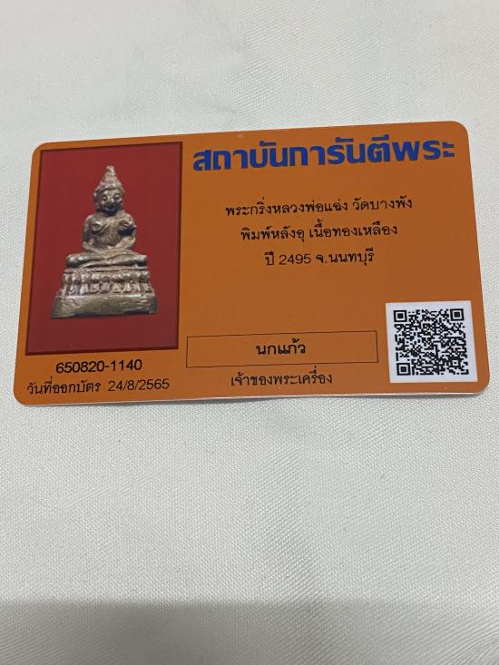 พระกริ่งหลวงพ่อแฉ่ง วัดบางพัง พิมพ์หลังอุ เนื้อทองเหลือง ปี2495 จ.นนทบุรี พร้อมบัตรรับรองฯ โอนเงินแล้วแจ้งรายละเอียดการโอนทาง Mailbox ของเวปจี ได้รับแจ้งว่าโอนเงินแล้วจะส่งพระภายใน 3 วันทำการ