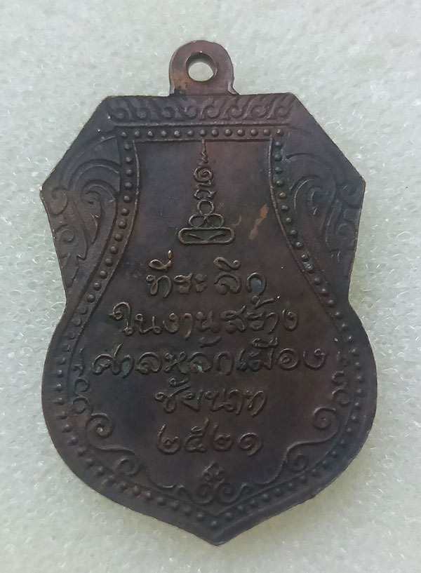 เหรียญหลวงปู่ศุข ที่ระลึกสร้างศาลหลักเมืองชัยนาท ปี 2521 เนื้อทองแดง (ลป.โต๊ะ, ลพ.สุด, ลพ.พริ้ง, ลพ.หน่าย, ลพ.เชื้อ และอีกหลายคณาจารย์ร่วมปลุกเสก) สภาพสวย