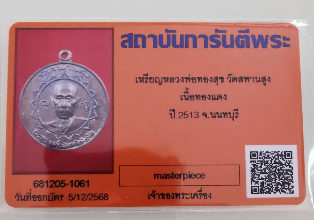 หลวงพ่อทองสุข วัดสะพานสูง พ.ศ.2513 สภาพสวยตามรูป พร้อมบัตรรับรอง