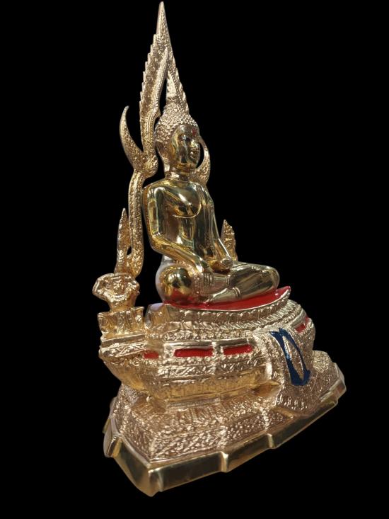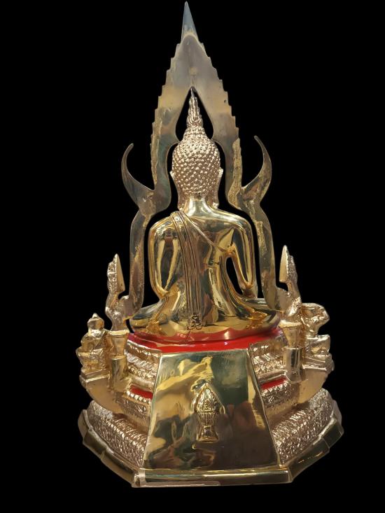 พระพุทธชินราช จ. พิษณุโลก ซุ้มถอดได้ ฐานหน้าอกเลาเนื้อทองเหลืองขัดมัน หน้าตัก 5 นิ้ว ขนาดความสูงรวมซุ้ม 12 นิ้ว