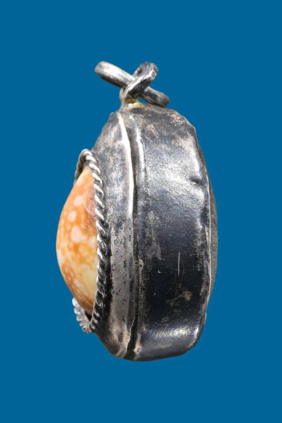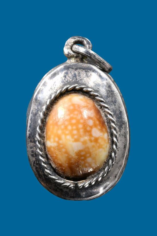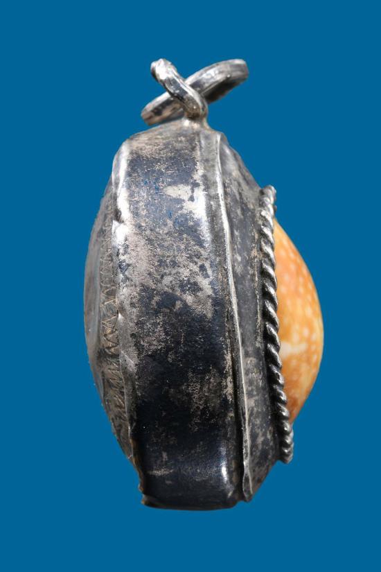 ปัจจุบัน เบี้ยแก้หลวงพ่อนุ่ม หายากมาก เบี้ยแก้ตัวนี้เลี่ยมเงินโบราณเก่ามาก ด้านหลังแกะชื่อหลวงพ่อนุ่มไว้ด้วย