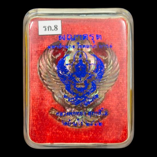 พญาครุฑ มหาอำนาจ โชคลาภ บารมี หลวงพ่อทอง สุทธสีโล วัดบ้านไร่ ๒๕๖๒ เนื้อทองแดงผิวรุ้ง หมายเลข ๔๘๔ (เลขสวยสามหลัก) พร้อมกล่องเดิม