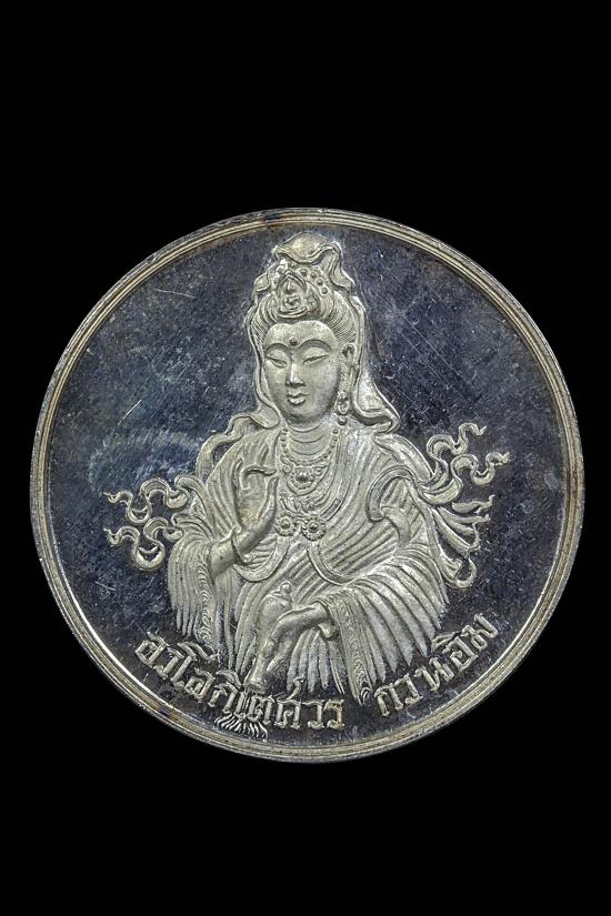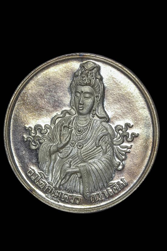เหรียญเนื้อเงิน พระอวโลกิเตศวร เจ้าแม่กวนอิมหลังมังกรคาบลูกแก้ว พระเทพกวี สมเด็จพระวันรัต วัดบวรฯ กทม. ปี36 ปลุกเสกพิธีใหญ่ ตอกโค๊ตขอบเหรียญ นน.18กรัม สภาพสวย แดง 1000 no.4