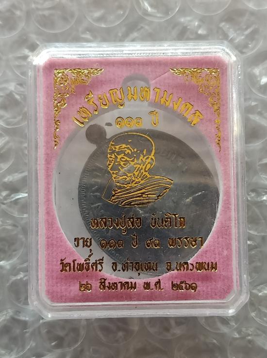 เหรียญมหามงคล ๑๑๓ ปี #เนื้อเหล็กน้ำพี้ หลวงปู่สอ วัดโพธิ์ศรี ตำบลรามราช อำเภอท่าอุเทน จังหวัดนครพนม |