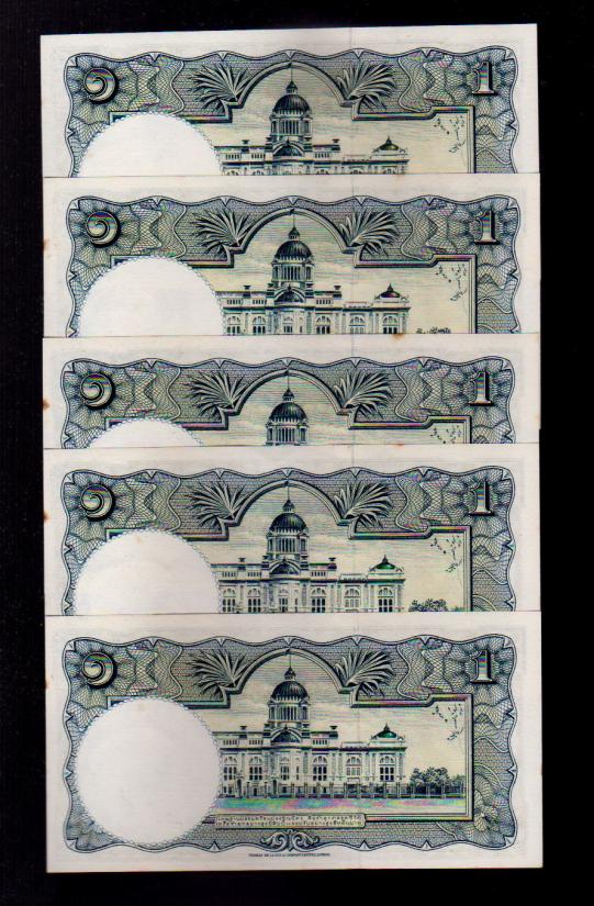 ## ธนบัตร 1 บาท ## โทมัส ## เรียงเลข 5 ฉบับ ## แกะแหนบ ## ไม่ผ่านการใช้