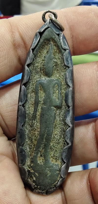 #พระลีลา เนื้อชินเขียว สองหน้า เลี่ยมเงินเก่า พร้อมใช้