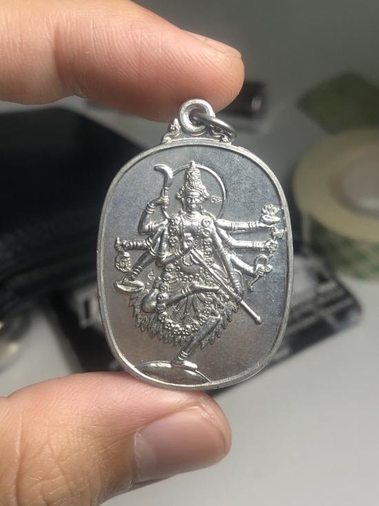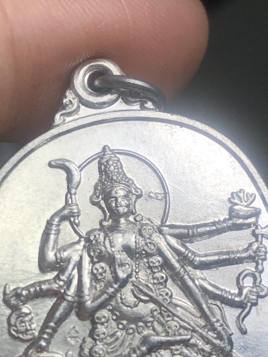 เหรียญเจ้าแม่กาลี หลังยันต์จีน ไม่ทราบที่ มีตอกโค้ด เนื้อปีกเครื่องบิน