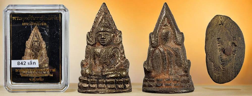 รูปหล่อโบราณพระพุทธชินราชอินโดจีน รุ่นมหาสิทธิโชค เนื้อชนวน พิมพ์เล็ก หมายเลข 842 สภาพสวยเดิมๆพร้อมกล่องครับ |