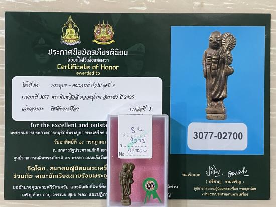 หายาก สร้างปี 2495 สภาพสวย สมบูรณ์ ไม่หักไม่ซ่อม รับประกันพระแท้ ดูง่าย ใบประกาศรางวัลที่3งานสมาคมงานใหญ่ที่ศูนย์ราชการ