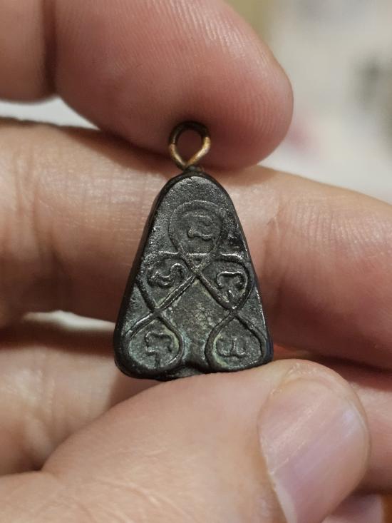 ด้านหลังเป็นยันต์กระต่ายสามขาลงอักขระทั้งห้าช่องด้วย นะ โม พุท ธา ยะ