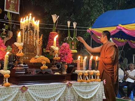 เเละเดินปักธูปรอบปรัมพิธี เเละโปรยดอกไม้