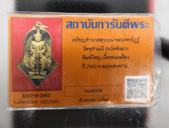 เคาะเดียวพร้อมบัตรรับรอง เหรียญท้าวเวสสุวรรณ หลวงพ่ออิฐ วัดจุฬามณี รุ่นวัดพังม่วง พิมพ์จำปีใหญ่ กล่องเดิม พร้อมบัตรรับรอง |