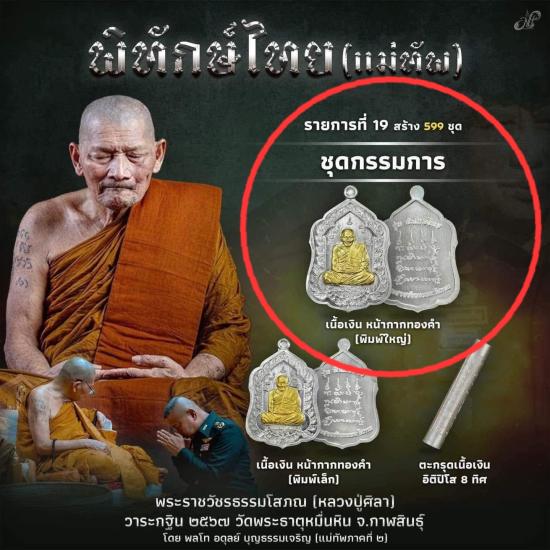 เหรียญ พิทักษ์ไทย ( แม่ทัพภาคที่๒ ) หลวงปู่มหาศิลา สิริจันโท วัดพระธาตุหมื่นหิน จ.กาฬสินธุ์ เนื้อเงิน หน้ากากทองคำ พิมพ์ใหญ่ เลข ๕๔๑ แยกชุดกรรมการ ไม่มีกล่องเดิม ราคาจองทั้งชุด 12999 บาท |