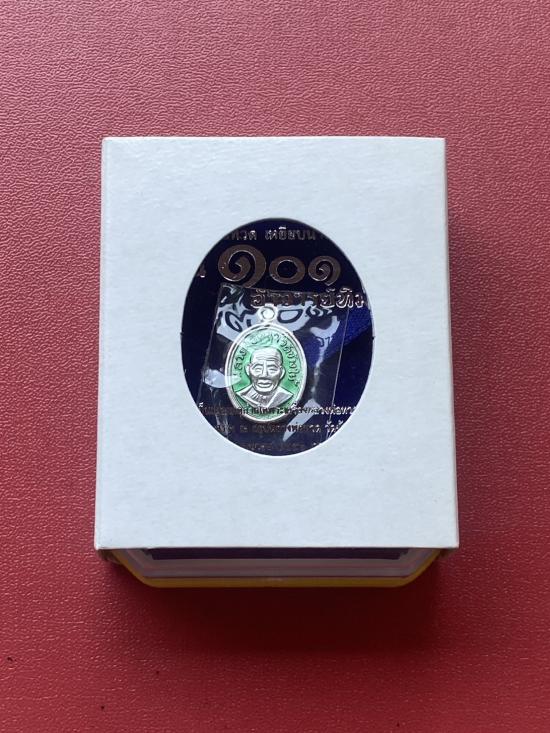 เคาะเดียวแดง เม็แตง หลวงปู่ทวด รุ่น 101ปีอาจารย์ทิม เนื้อ เงินลงยาสีเขียว