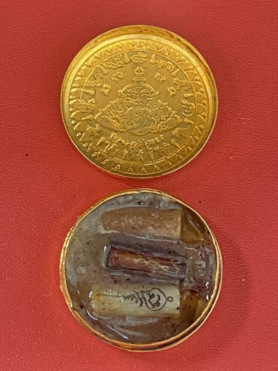 เนื้อ โลหะชุบทองลงยาสีแดงขอบสีน้ำเงิน ขนาด3.2ซม |