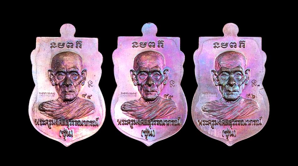 +!!เคาะเดียวllดง ตลอดสาย!!+ (รับ 3 เหรียญ) เสมาหัวโต หลวงปู่ทวด-พ่อท่านซุ่น วัดบ้านลานควาย จ.ปัตตานี รุ่นมงคล88 ปี2558 เนื้อทองแดงผิวรุ้ง เลขเรียงติดกัน เลขสวย 94/95/96 พร้อมกล่องครับ