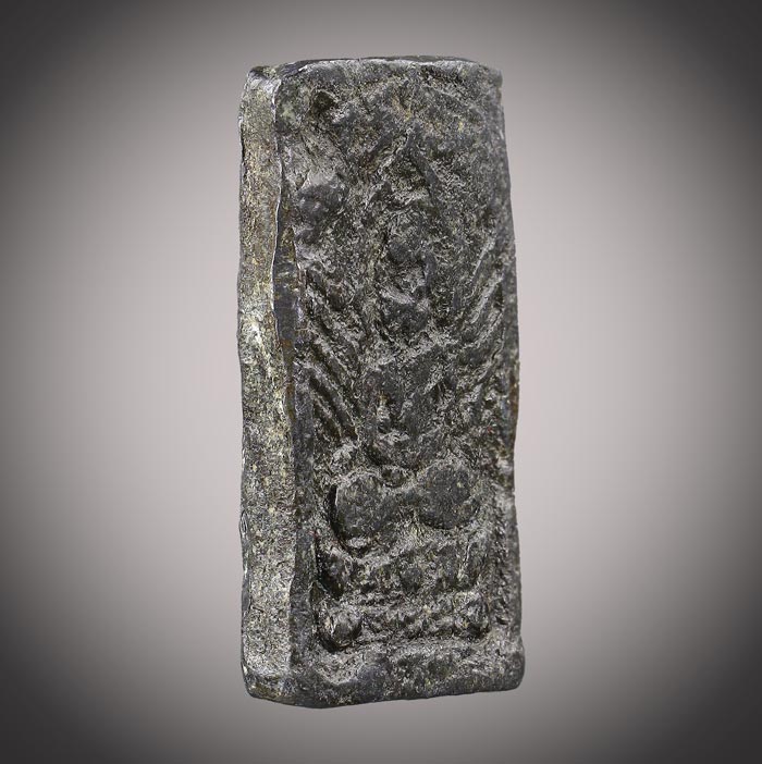 พระหล่อโบราณ สี่เหลี่ยม (ไม่ทราบที่) เนื้อตะกั่วเก่ามีอายุ ขนาดพระ ฐาน 1.3cm สูง 2.1 cm |
